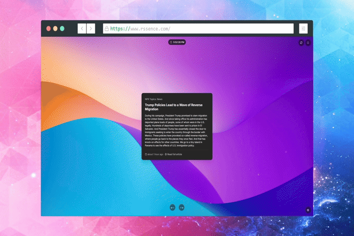 Inspired by retro feed readers and the rebirth of RSS, we built an open-source tool that turns your screen into a stunning feed display. Whether it’s running on a TV, second monitor, or wall-mounted display, RSSence offers a blend of motion, minimalism, and customizability.